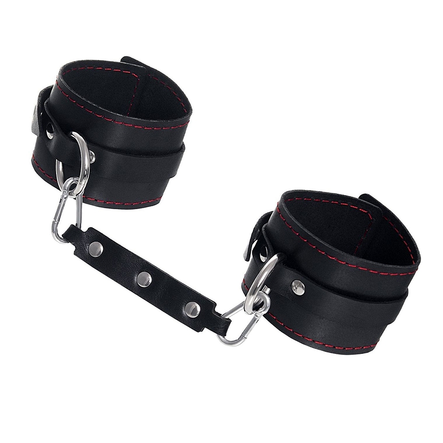 Эти однослойные кожаные оковы с контрастной строчкой красного цвета отлично подходят для взрослых игр. Они позволяют частично ограничить движение рук и ног, что даёт вам полный контроль над партнёром.