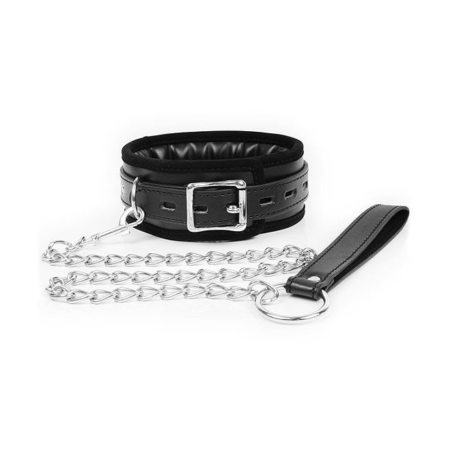 В комплект входит ошейник с возможностью регулировки размера с помощью ремешков и металлическая цепочка-поводок на карабине, который при желании можно отстёгивать. Внутренняя поверхность ошейника имеет мягкую накладку, препятствующую натиранию кожи. БДСМ-аксессуар прост в применении, не требуют специального ухода.
