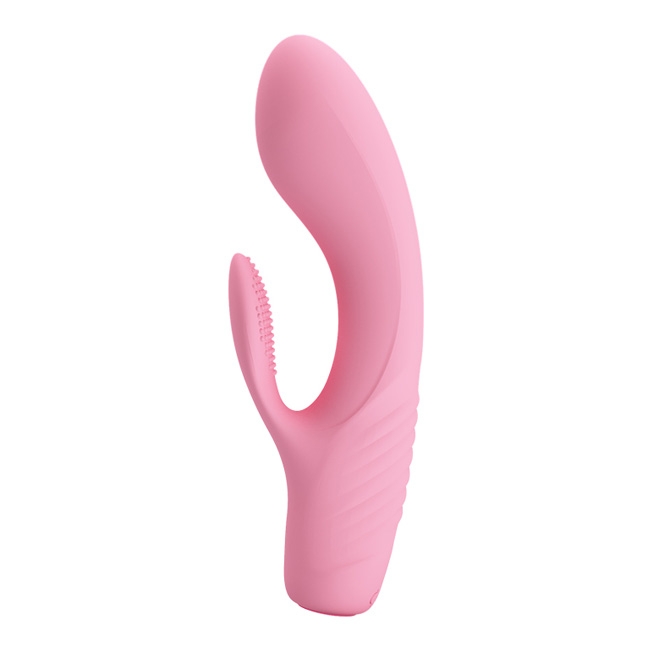 Элегантный вибромассажер-кролик с клиторальным стимулятором с мягкими пупырышками.